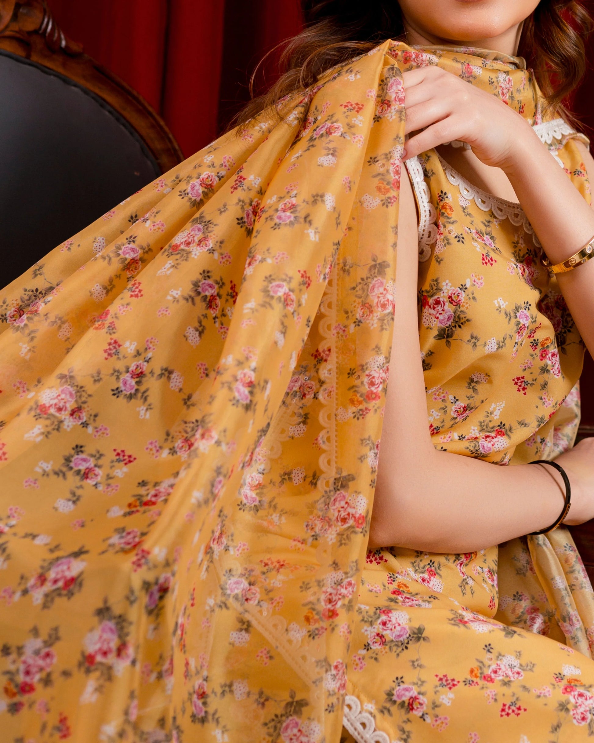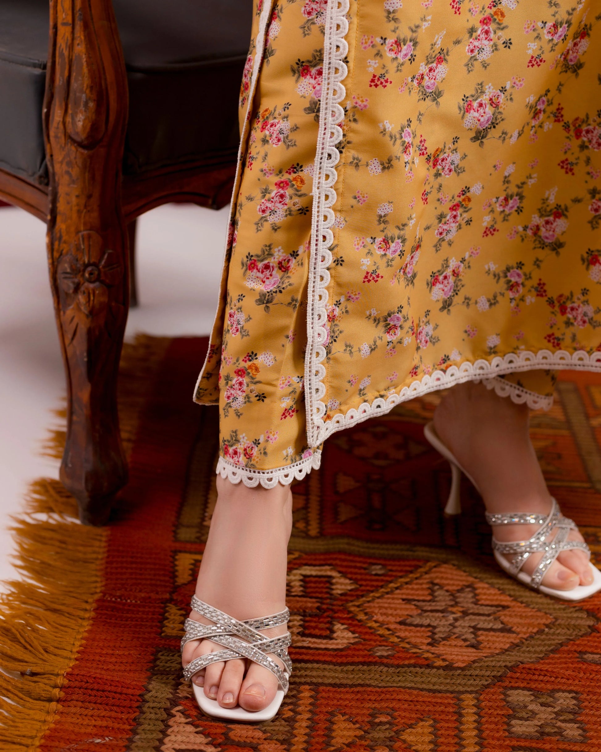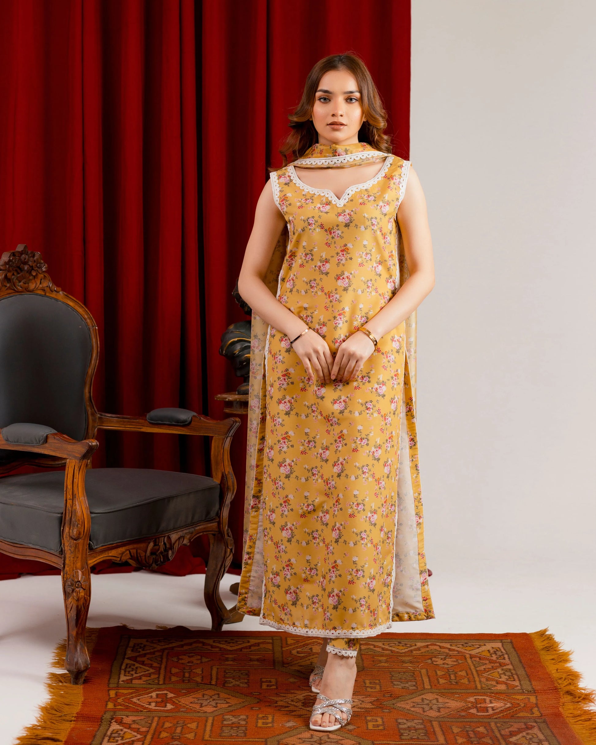Premium Fabric: Lawn Long Shirt & Pants, Silk Dupatta